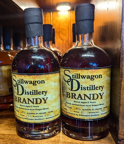 This 5 year old, 80 proof brandy is only available in the tasting rooms in Bandon, Reedsport, and Florence. Each batch is a unique single barrel bottling.